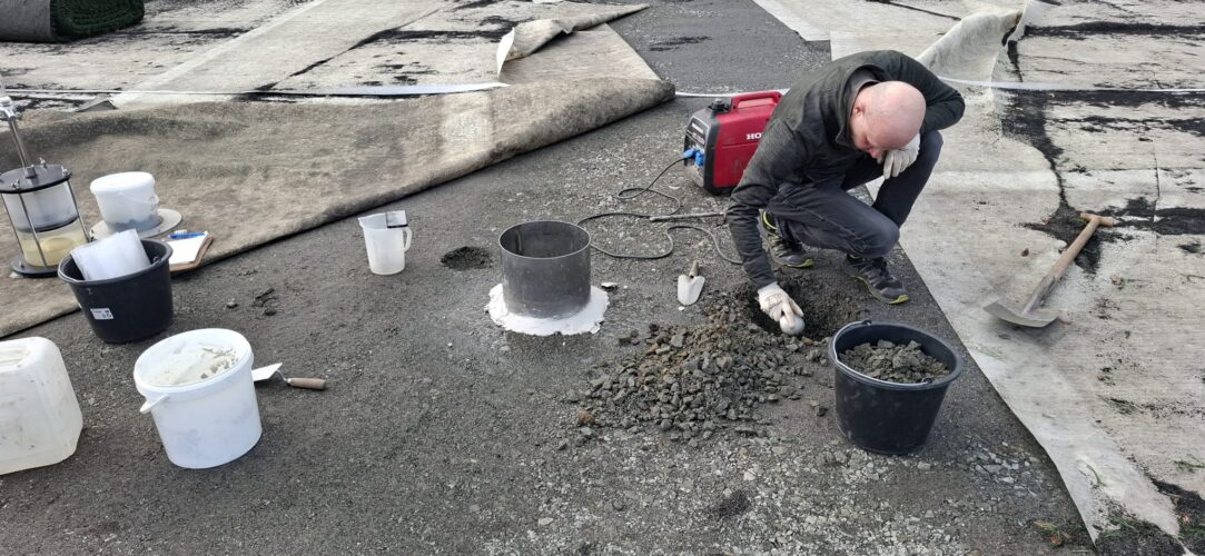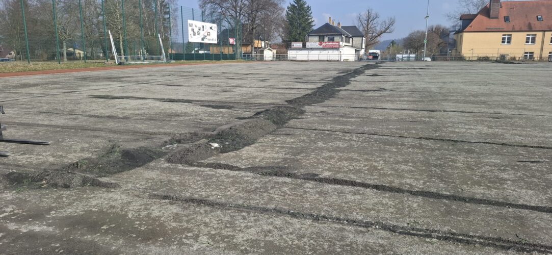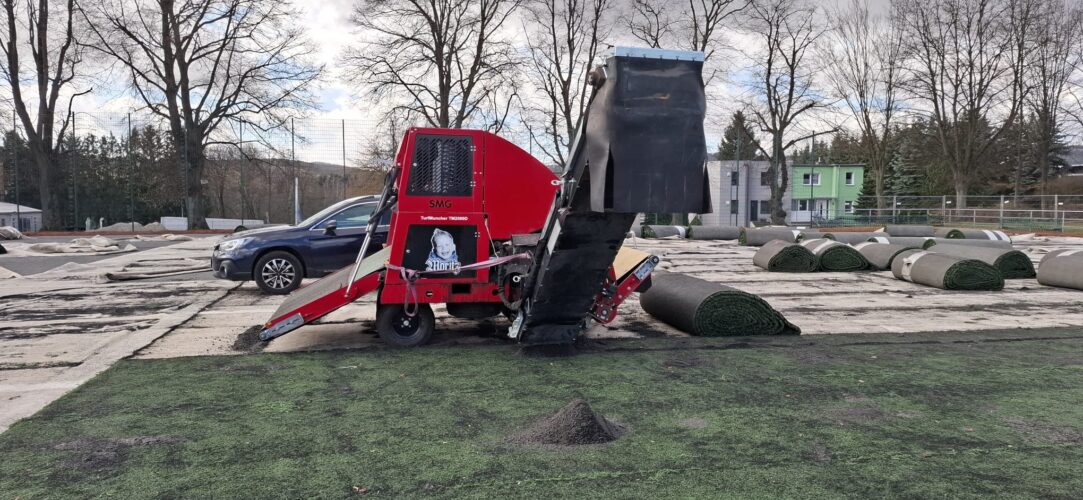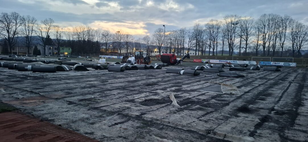 Als nächster Schritt folgt nun das Aufbringen der elastischen Tragschicht – die Basis für unseren neuen, modernen Kunstrasenplatz.