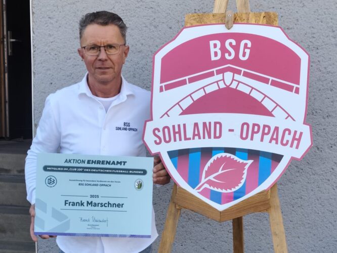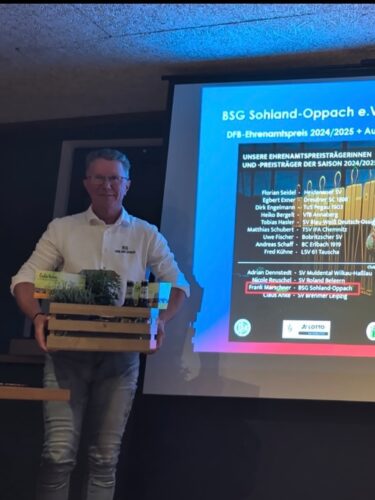 Wir gratulieren Frank zu dieser besonderen Auszeichnung, die begründet ist in seinem jahrelangen Engagement und bedanken uns gleichzeitig für die vielen ehrenamtlichen Stunden, das Herzblut und die Leidenschaft für den Fußball.